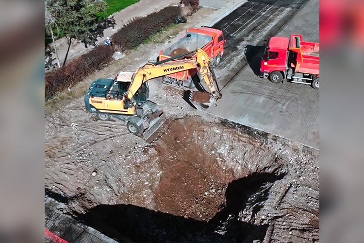 В Бишкеке начали строительство подземного пешеходного перехода на недавно отремонтированном проспекте Чингиза Айтматова. На участке работает тяжелая техника — подрядчики приступили к рытью котлована.