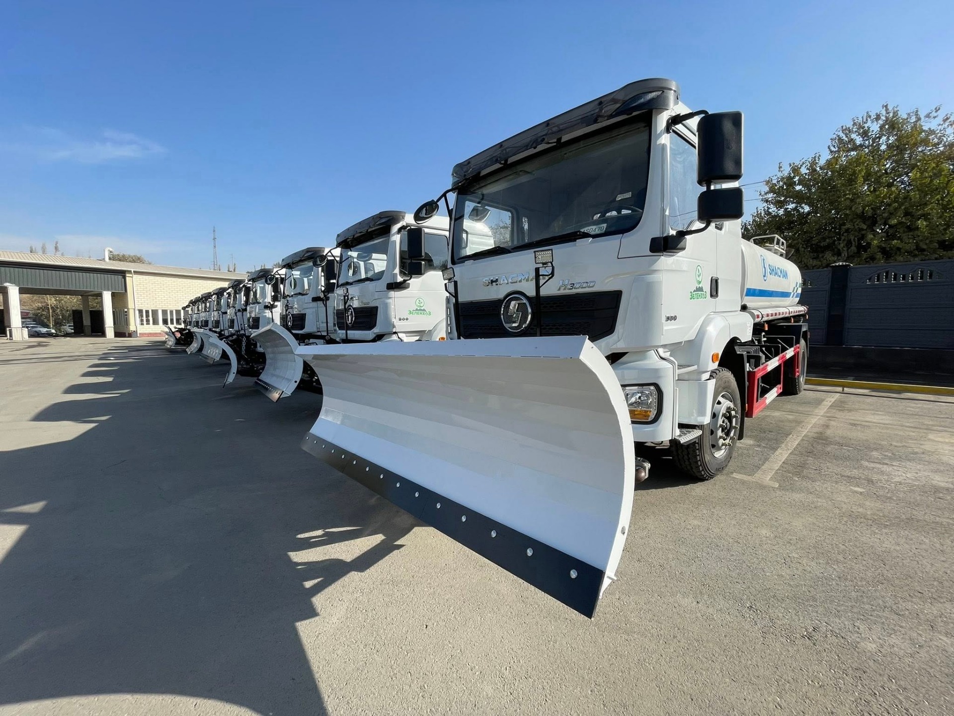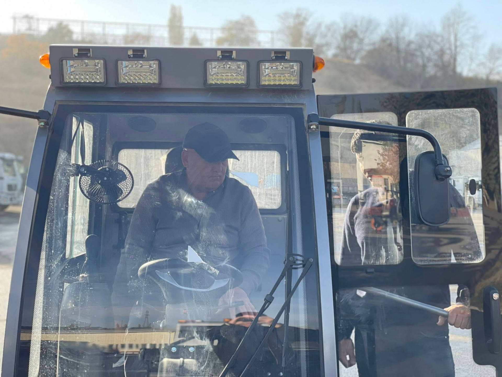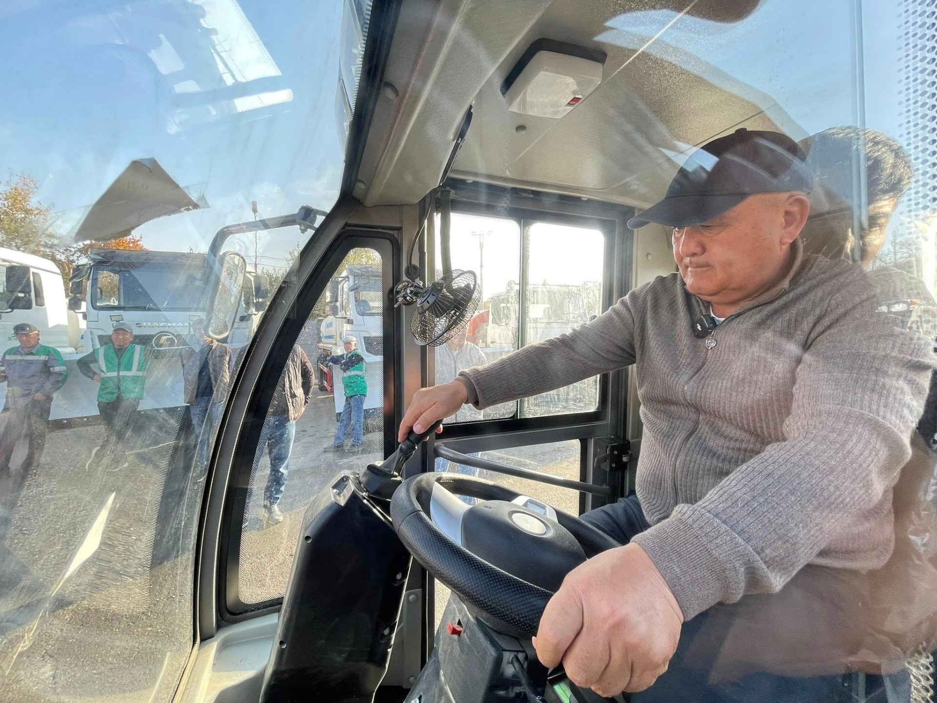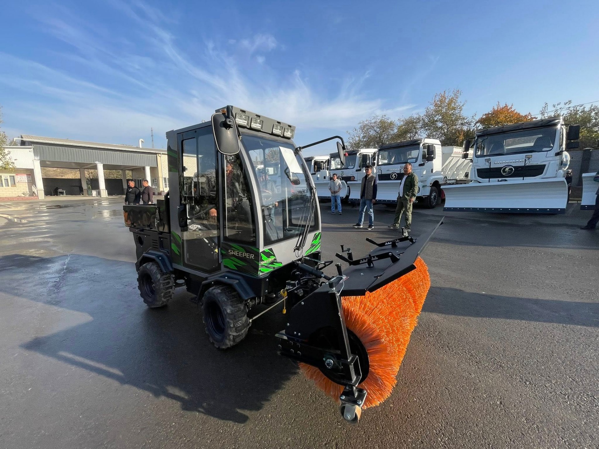Впервые по инициативе градоначальника для муниципальных служб закупили новые специализированные машины для уборки снега и очистки улиц. Женишбек Токторбаев лично протестировал технику.