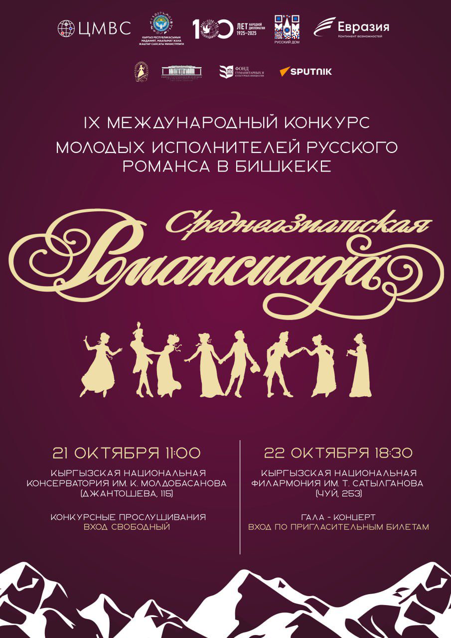 21 октября в Бишкеке состоится IX международный конкурс молодых исполнителей русского романса «Среднеазиатская Романсиада». Об этом сообщили в Россотрудничестве.