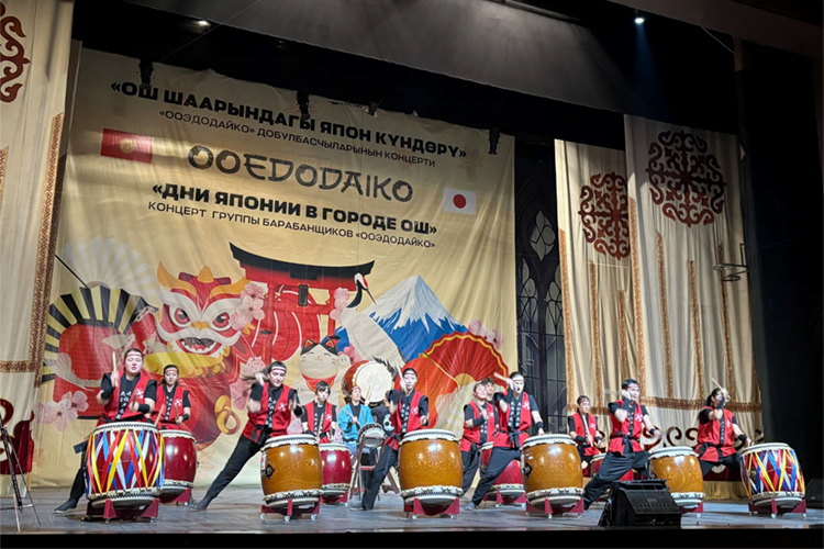 Вечером того же дня в Ошском национальном драматическом театре имени Султана Ибраимова состоялся сольный концерт группы японских барабанов «Ооэдодайко», на котором присутствовали представители Ошской областной администрации и мэрии города.