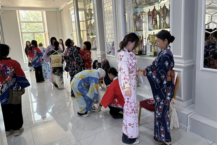 Помимо концертной программы, участники смогли познакомиться и с традиционной японской культурой в фойе университета, где волонтеры JICA и сотрудники KRJC знакомили всех желающих с каллиграфией, надеванием юкаты (летний вариант кимоно), оригами и традиционными играми.