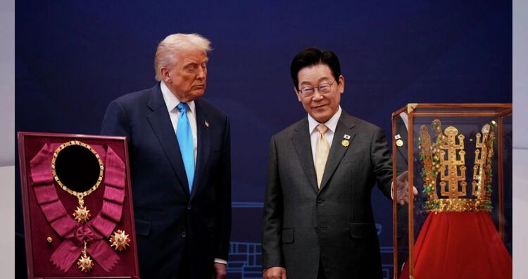 Глава Белого дома Дональд Трамп получил от лидера Южной Кореи Ли Чжэ Мена высшую награду — «Орден Мугунхва», а также золотую копию древней короны из Силлы. Об этом сообщает Reuters.