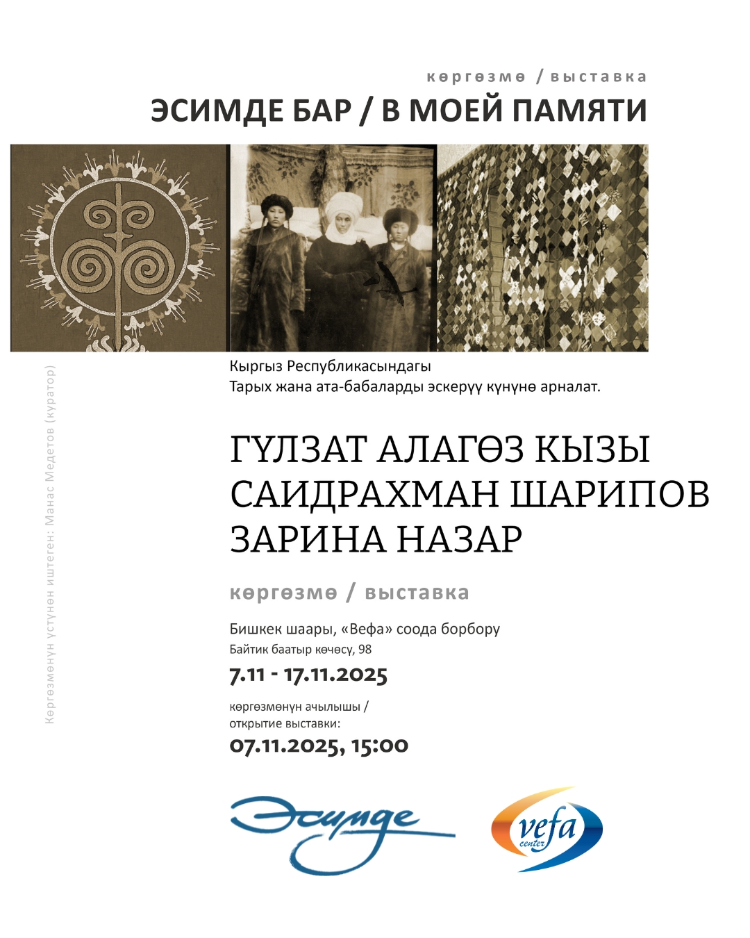 В Бишкеке 7 ноября откроется выставка «Эсимде бар/В моей памяти» ко Дням истории и памяти предков. Об этом сообщили организаторы.