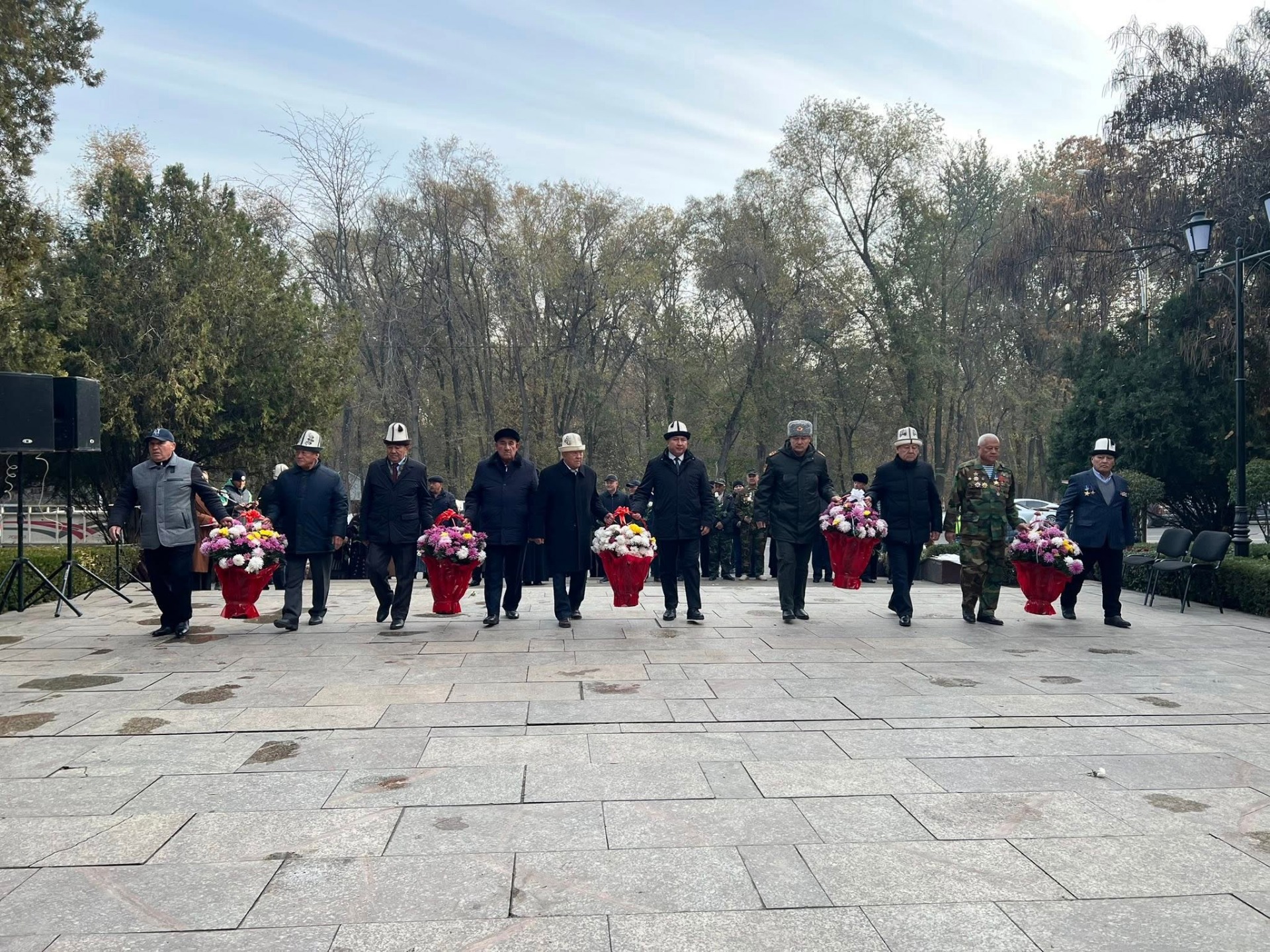 Церемония состоялась у мемориального комплекса «Вечный огонь». В ней приняли участие заместители мэра, сотрудники муниципалитета, депутаты городского кенеша, руководители городских служб и предприятий, военнослужащие Ошского гарнизона и горожане.