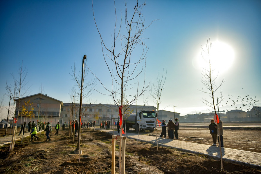 Березы, туи, клены и дубы посадили на территории средней общеобразовательной школы № 102 и вдоль улицы Байтика Баатыра — на участке от улицы Ахунбаева до Джантошева с западной стороны.
