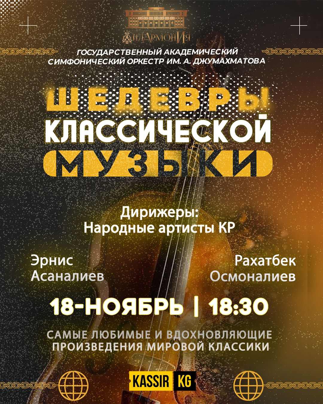 Государственный академический симфонический оркестр имени Джумахматова приглашает вас на вечер классической музыки.