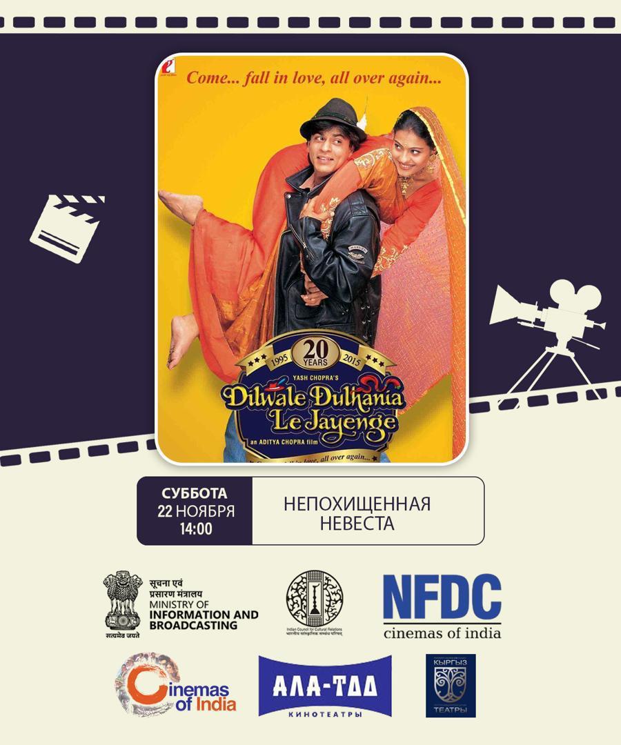 Кыргызстанцам покажут фильмы «Непохищенная невеста» (с кыргызскими субтитрами, в главной роли Шахрукх Кхан); «Инглиш Винглиш» (с русскими субтитрами, в главной роли Шри Деви); «Жизнь не может быть скучной» (с русскими субтитрами, в главной роли Ритик Рошан).