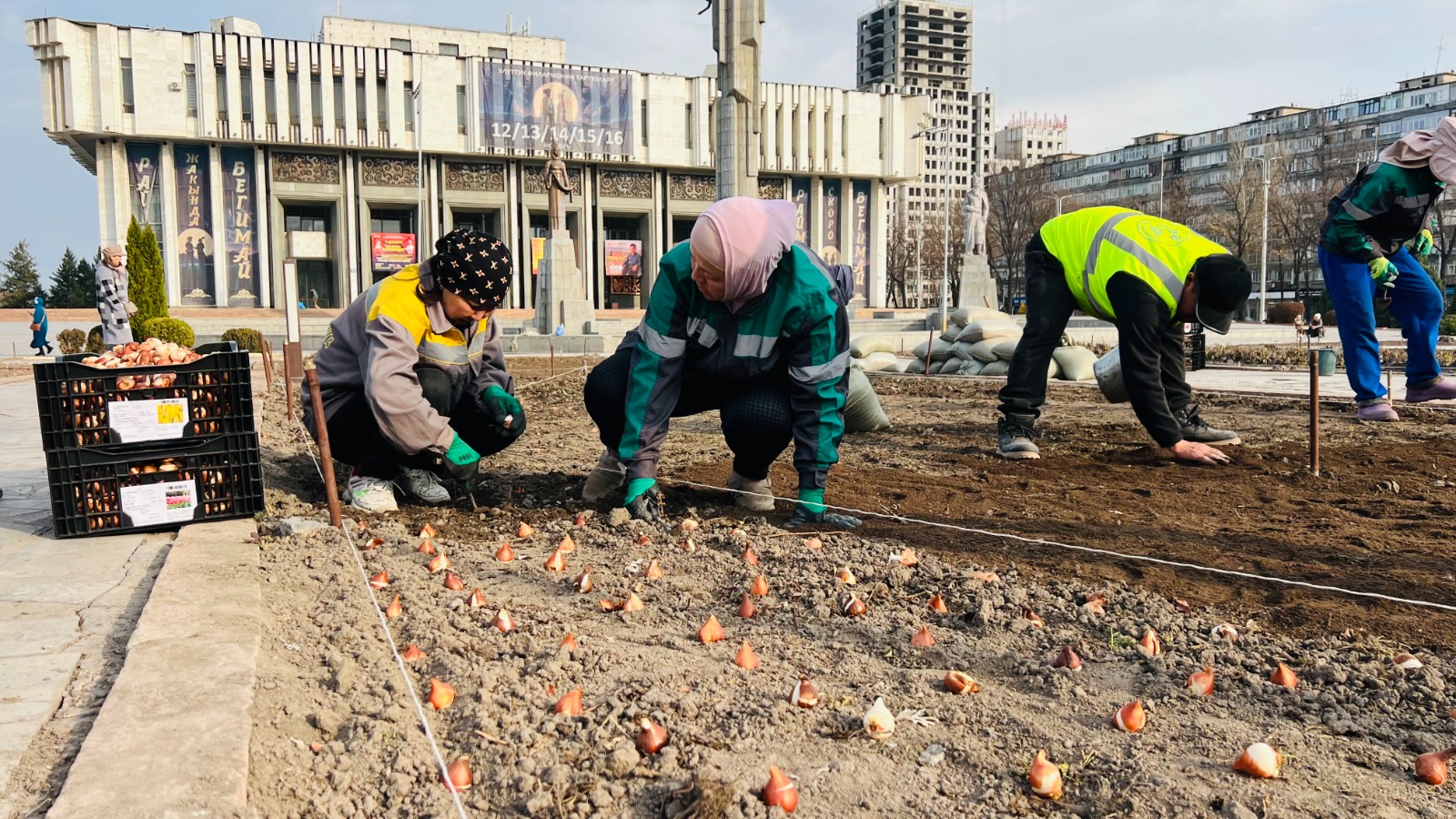 Муниципальное предприятие «Бишкекзеленстрой» приступило к осенней посадке тюльпанов. Об этом сообщила пресс-служба мэрии.