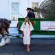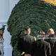Супруга президента Соединенных Штатов осмотрела дерево, привезенное на конной повозке, и пообщалась с кучерами в черных цилиндрах и фраках.