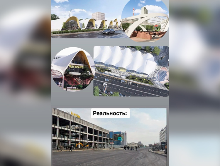 В соцсетях бурно обсуждают строительство комплекса Old Bishkek: пользователи пытаются рассмотреть в реальном объекте обещанный «Таймс-сквер» или «Монте-Карло», но, по их словам, пока видят лишь очередную коробку в центре города. Эскиз, представленный ранее, по мнению горожан, заметно отличается от того, что растет на площадке сегодня.