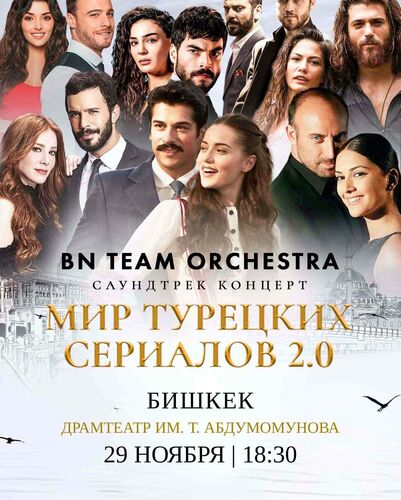 Симфонический оркестр BN Team собрали главные саундтреки из турецких сериалов: «Великолепный век», «Кара севда», «Королек — птичка певчая», «Запах клубники», «Постучись в мою дверь», «Чукур», «Ветреный», «Приговор», «Зимородок», «Запретная любовь», «Основание Осман», «1000 и 1 ночь», «Keralik ask» и других.