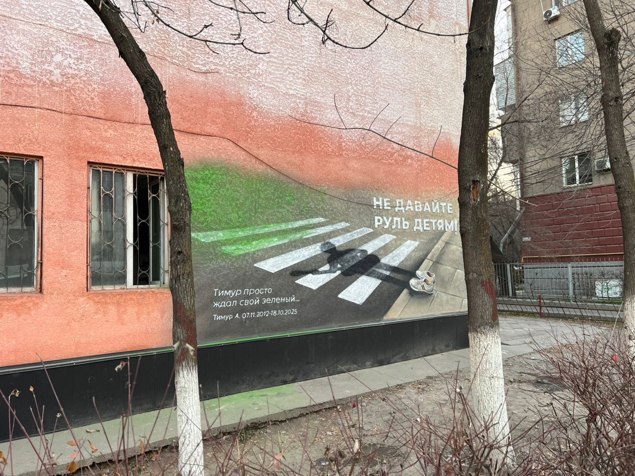 В Бишкеке на стене школы № 24 появился мурал в память о погибшем в дорожно-транспортном происшествии ученике Тимуре. Об этом 24.kg сообщил автор работы Валерий Катревич.