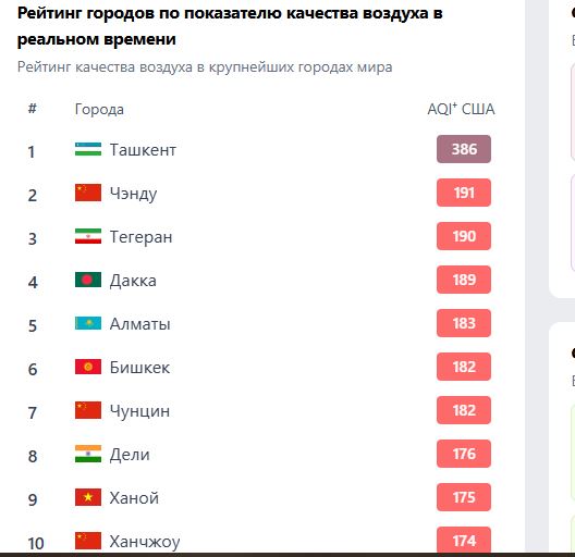 Бишкек оказался в топ-6 городов мира с самым загрязненным воздухом. Об этом свидетельствуют данные международных платформ мониторинга качества воздуха. Информация актуальна на 17.30.