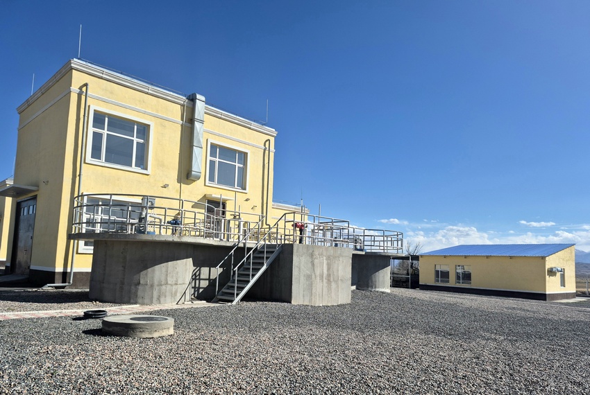 На подъезде к Балыкчи, на главной трассе, видно два желтых здания. Это и есть наш объект — новые канализационно-очистные сооружения. Да, специфический запах пока ощущается, но именно он и является индикатором того, что система работает.