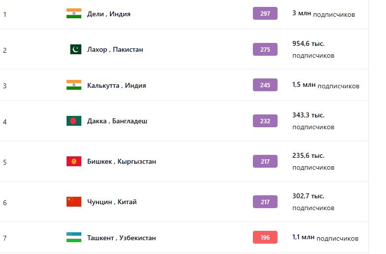 В рейтинге крупнейших городов мира по качеству воздуха World Air Quality на 18.00 Бишкек находится на 5-м месте.