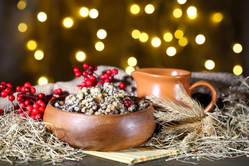 В рождественском меню главное место занимает кутья (сочиво). Это традиционное угощение. Именно с него начинают трапезу 7 января. Блюдо состоит из зерен пшеницы, орехов, меда, сухофруктов и мака. Кутья символизирует богатство, семейный достаток и вечную жизнь.