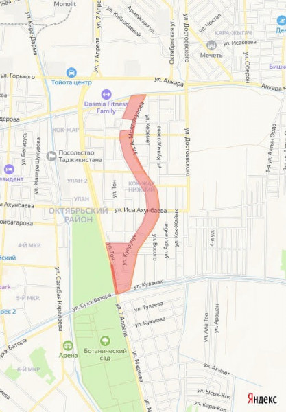 - улицей Куланак по Молдокулова и улицей Куйручук до Кулмурзаева;