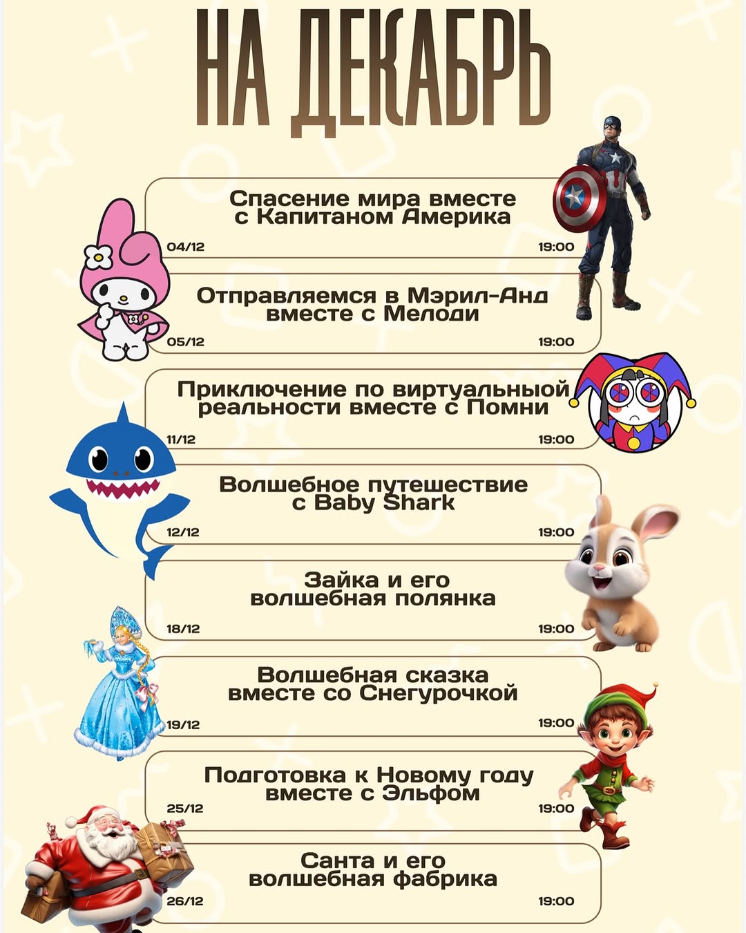 Детей ждут развлекательные программы: в четверг — с Помни, в пятницу — c Baby Shark.