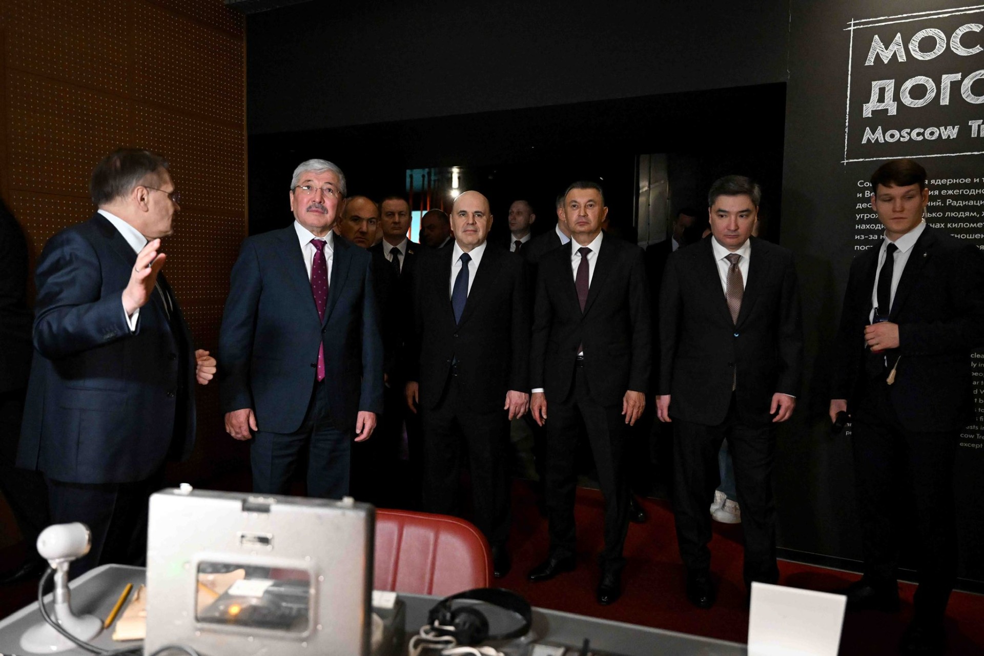 Глава кабинета министров вместе с премьер-министрами стран ЕАЭС ознакомился с музеем в павильоне «Атом» на территории выставочного комплекса ВДНХ. Павильон является крупнейшим образовательным центром, посвященным развитию атомной промышленности. Экспозиции музея охватывают историю освоения атомной энергии — от первого советского проекта до современных научных и технологических достижений.