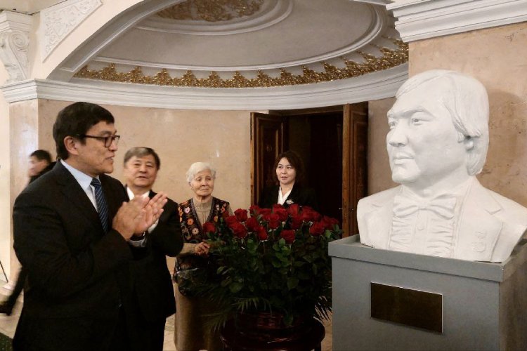 Специально к юбилею в фойе театра был торжественно открыт бюст Булата Минжилкиева. Это работа молодого талантливого скульптора Тамилы Маматовой.