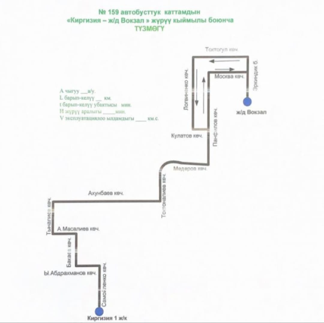 Отмечается, что маршрут № 159 запущен с целью повышения удобства и улучшения транспортной доступности для жителей данного района. Автобусы будут курсировать от жилмассива «Киргизия-1» до железнодорожного вокзала «Бишкек-2» на бульваре Эркиндик согласно утвержденной схеме движения.