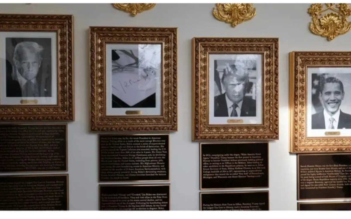 Другие таблички под президентскими портретами содержат различную информацию об их жизненном пути и основных шагах на своем посту. Джордж Буш — младший описывается как сильный президент в связи с его борьбой с международным терроризмом, но критикуется за военные кампании США в Афганистане и Ираке. Билл Клинтон отмечен как президент, достигший успехов в борьбе с преступностью и реформах системы социальной защиты, однако упоминается его участие в нескольких скандалах 1990-х. Отдельно на посвященной ему табличке указано, что «в 2016 году жена президента Клинтона, Хиллари, проиграла президентские выборы Дональду Трампу».