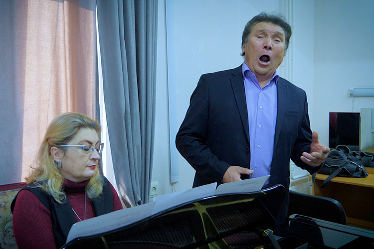 «Бакыт Ыбыкеев исполняет на сцене самые главные и сложные партии, но не забывает и о концертной тематике. Помимо романсов, он очень любит давать концерты, посвященные Дню Победы», — делится концертмейстер.