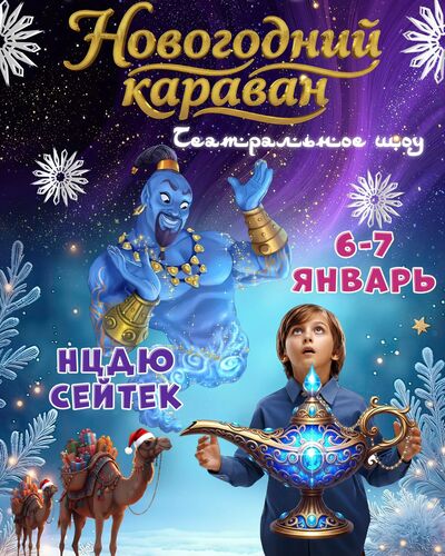 А 6-7 января в Национальном центре детей и юношества «Сейтек» также состоится интересное и красочное представление «Новогодний караван» — шоу, которое пройдет прямо среди зрителей!Впервые действие развернется не только на сцене, но и в зале. «Караван» в прямом смысле промчится через весь зал — сказочные персонажи, ростовые куклы и артисты будут взаимодействовать со зрителями на расстоянии вытянутой руки!