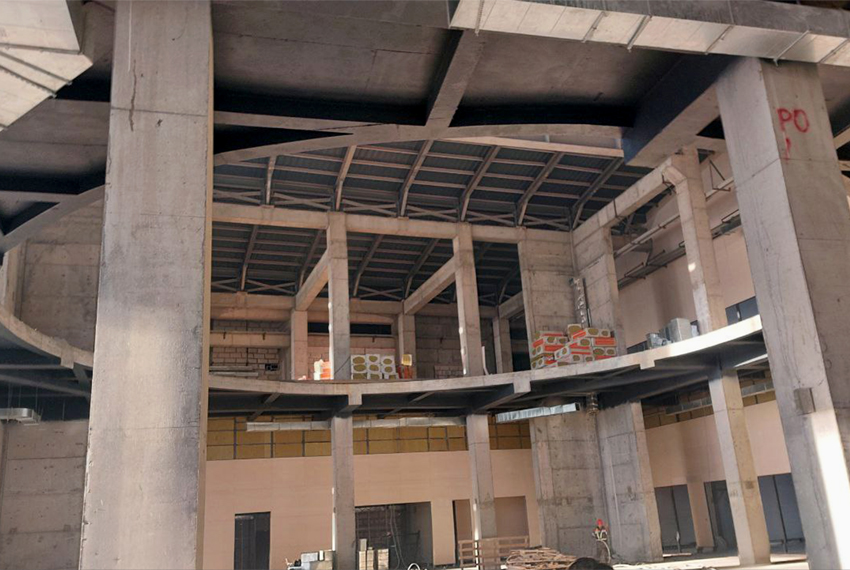 Значительная часть работ выполнена и снаружи здания. Кровля готова на 80 процентов, продолжается установка панорамных окон, которые придадут комплексу современный облик.