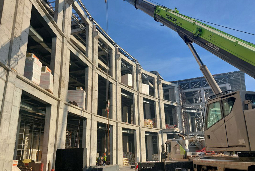 На строительной площадке нового автовокзального комплекса работа не останавливается ни на минуту. Круглосуточно и в две смены здесь продолжается возведение одного из крупнейших инфраструктурных объектов города.