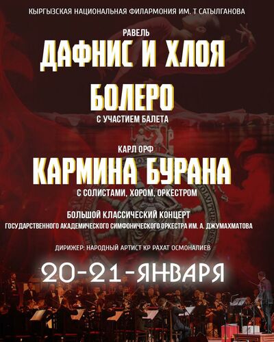 Государственный академический симфонический оркестр имени Джумахматова представит масштабную программу с участием балета и хора. В этот вечер прозвучат знаковые произведения XX века, где симфоническая музыка, хоровое искусство и пластика танца соединяются в едином сценическом действии.