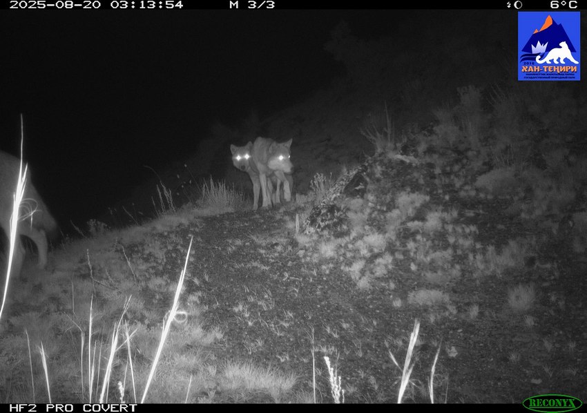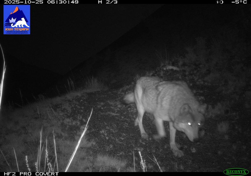 Оборудование, которое специалисты установили в мае 2025 года и сняли в декабре, зафиксировало фото редких обитателей высокогорья. В объектив попали снежный барс и рысь, стая волков, лиса и горные козлы.