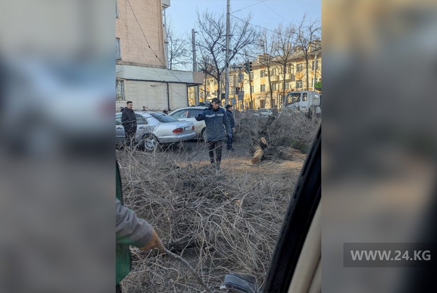 В центре Бишкека движение оказалось практически парализовано из-за работ городских служб. Как сообщили очевидцы, на улице Киевской в районе пересечения с проспектом Манаса коммунальные бригады пилят деревья прямо на проезжей части.