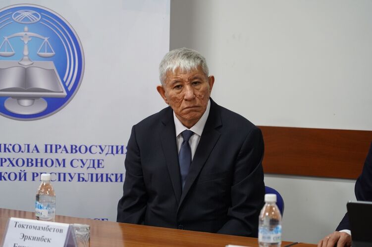 Сегодня председатель Верховного суда Кыргызской Республики Медербек Сатыев официально представил коллективу Высшей школы правосудия нового директора — Эркина Токтомамбетова.