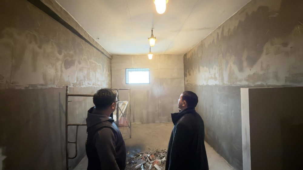 Продолжаются работы в кинозале и старом здании, где создаются специализированные съемочные локации и сценические пространства.