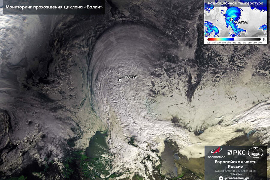 «Роскосмос» опубликовал снимки циклона Валли, сделанные со спутника. Балканский циклон пришел в Россию из Болгарии.