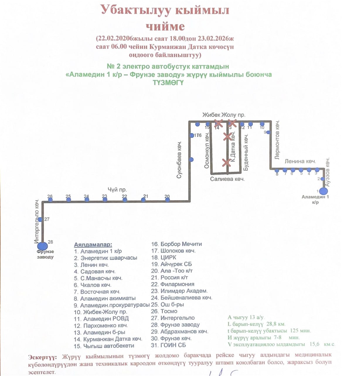 В столице 22 февраля с 18.00 до 6.00 23 февраля перекроют участок проспекта Жибек Жолу от улицы Буденного до улицы Курманжан Датки. Об этом сообщила пресс-служба мэрии Бишкека.