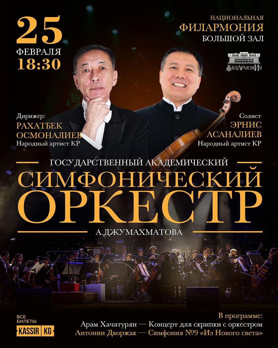 Государственный академический симфонический оркестр имени Асанхана Джумахматова приглашает всех вас на прекрасный вечер классической музыки.