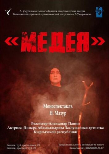 В исполнении талантливой актрисы, заслуженной артистки КР Динары Абдыкадыровой древний сюжет становится острым и современным высказыванием о боли, уязвимости и разрушительной силе страсти. Медея — это женщина, которая любила без остатка и потому потеряла все.
