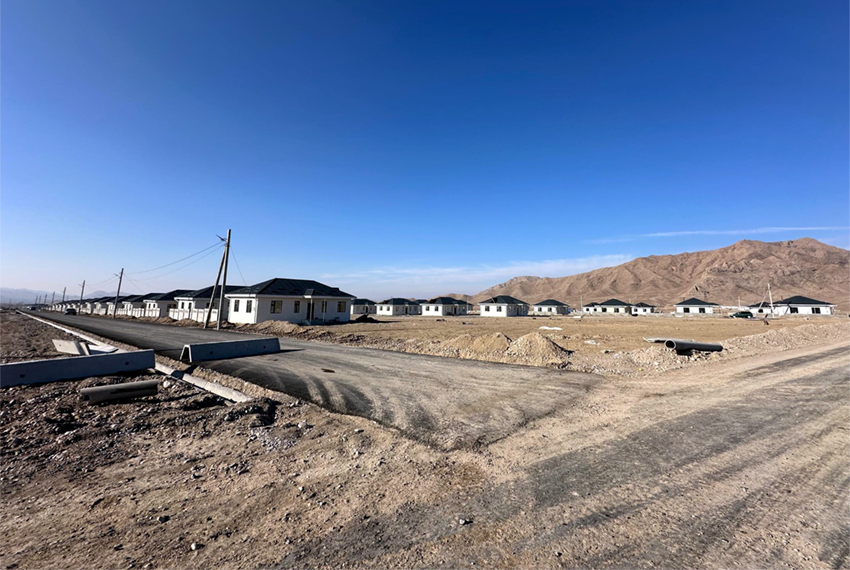 По данным полпредства, в новых поселениях разместились жители улиц Нурматова и Жаныбаева села Раззаков, участка Сада и села Максат. В новых селах выполнены инфраструктурные работы. Продолжается строительство детского сада.