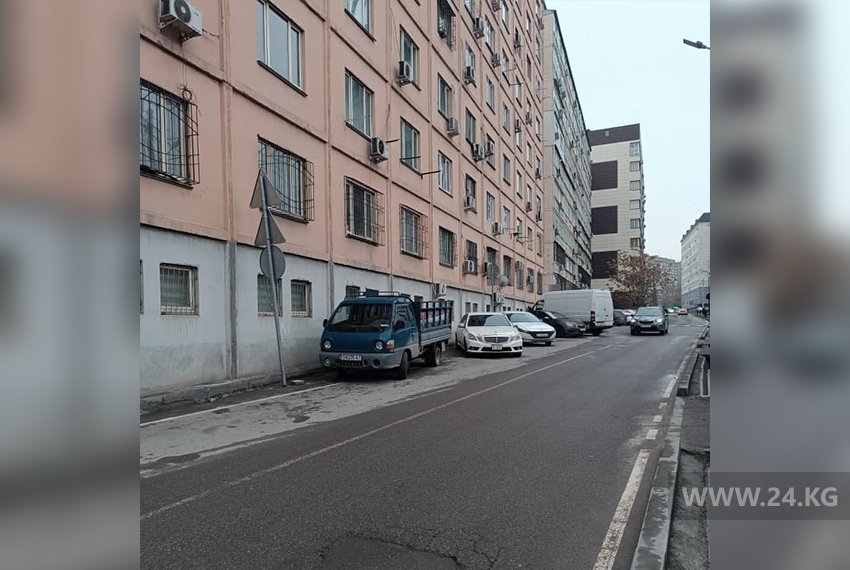Автомобилисты Бишкека оставляют машины на проезжей части и газонах. Фото 24.kg присылают горожане.