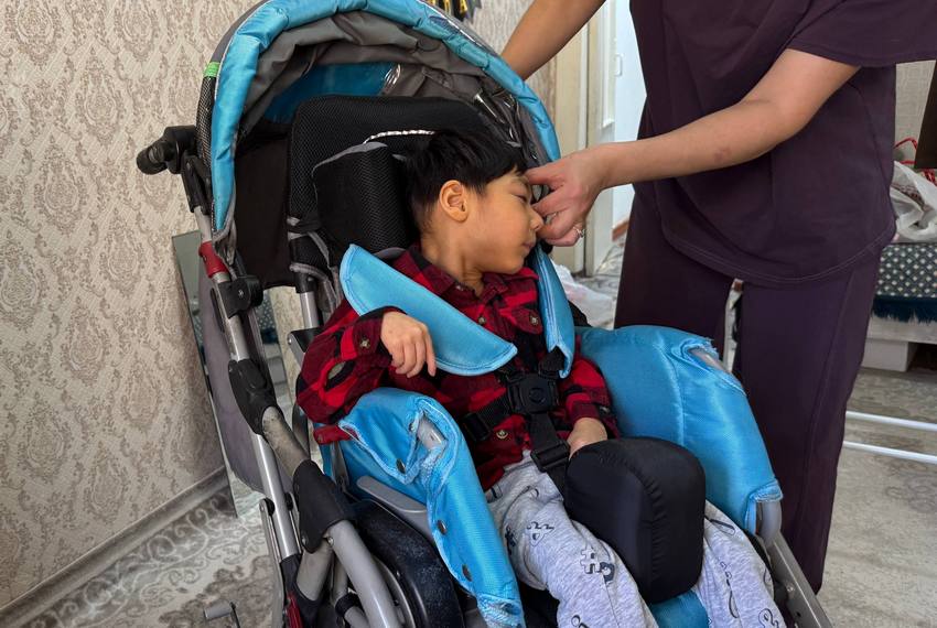 Бегайым с мужем воспитывают троих детей. Старшему сыну одиннадцать лет, он учится в пятом классе, дочке девять — она в третьем. Младшему, Бекнуру, пять с половиной. У мальчика микроцефалия и эпилепсия с судорожным синдромом.