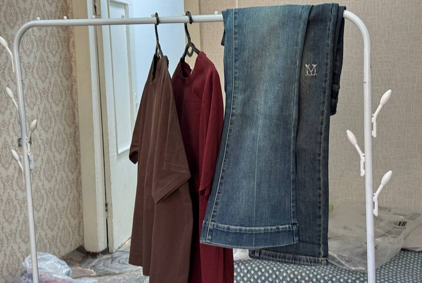 У нее есть WhatsApp-группа. Некоторые изделия ей дают под реализацию знакомые женщины с рынка «Дордой». В ассортименте — хлопковые костюмы-двойки из вареного хлопка (размеры 42–50, брюки на резинке — удобно для мам с детьми), а также игрушки.