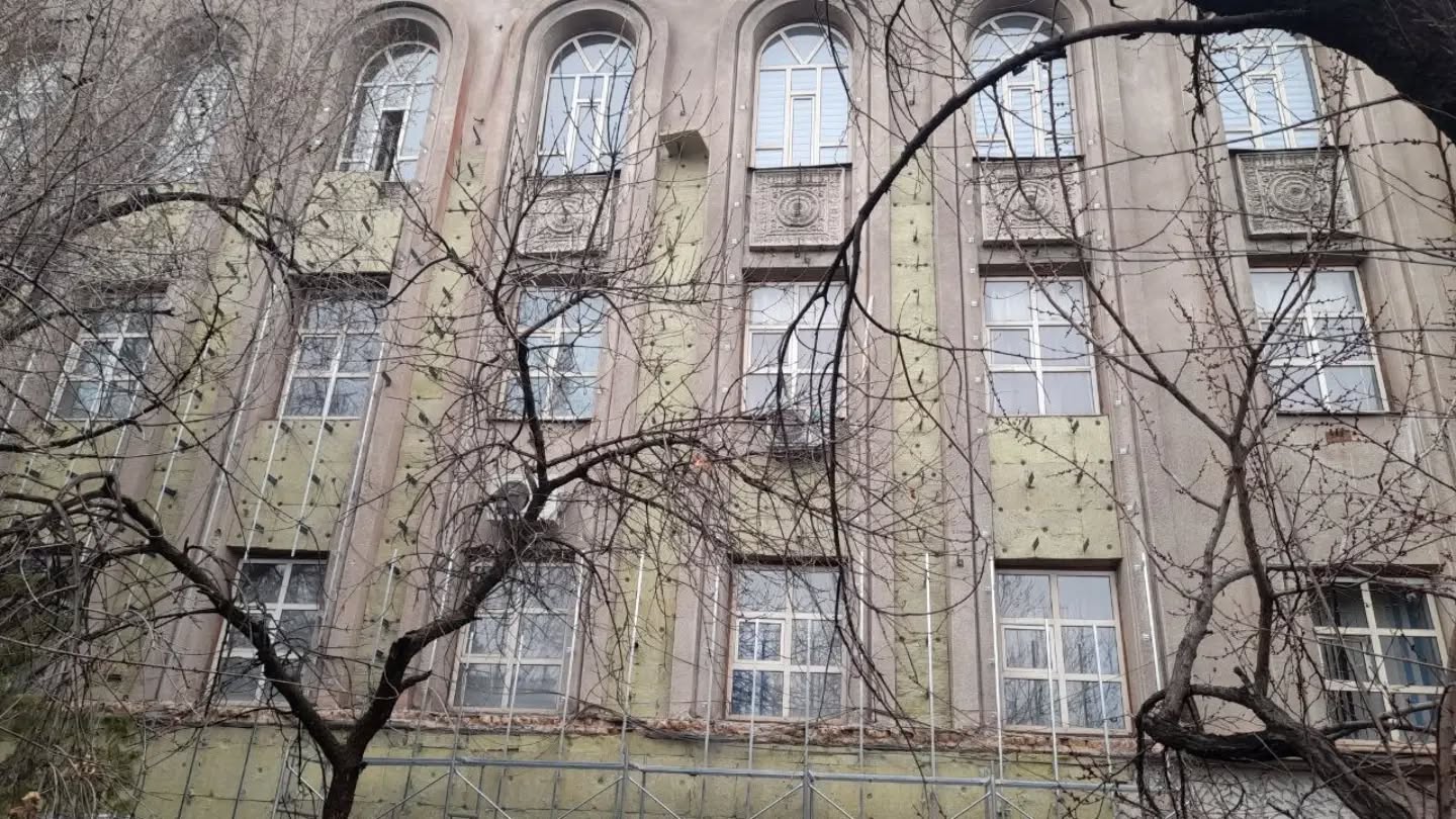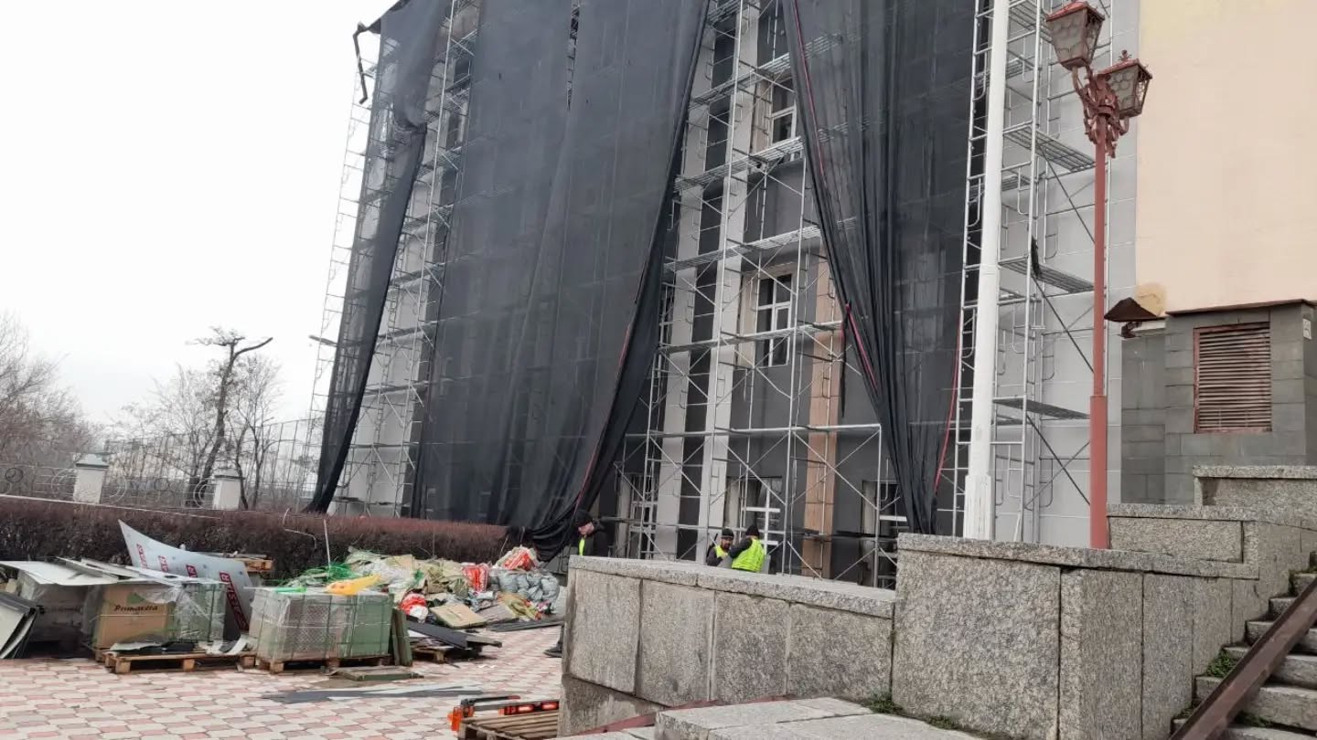 Жители Бишкека обратили внимание на ремонт фасада здания Кыргызского государственного института физической культуры, который относится к памятникам архитектуры республиканского значения.