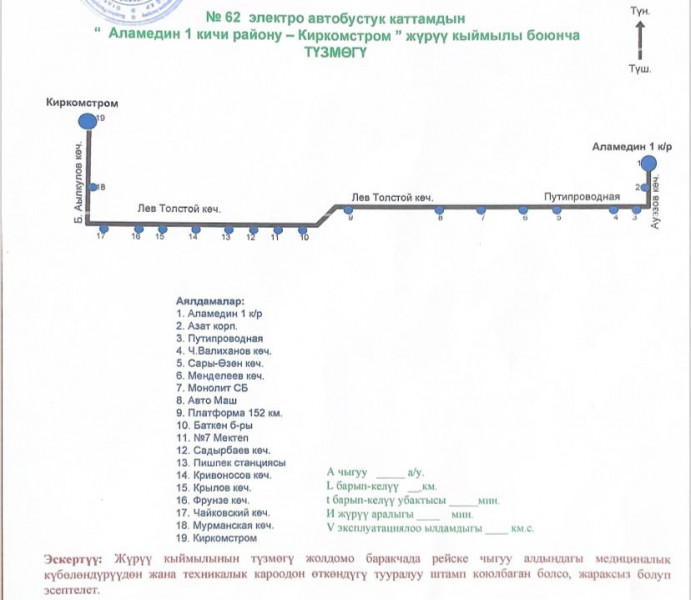 В Бишкеке с 3 марта заработает новый маршрут электробуса № 62. Он будет курсировать от микрорайона «Аламедин-1» до остановки «Киркомстром».