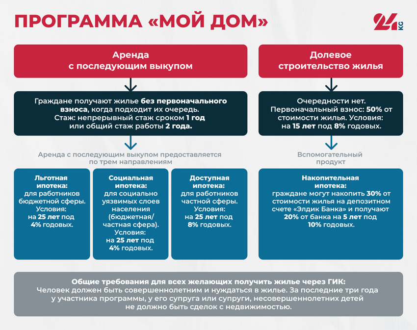 В дальнейшем у нас в планах повысить уставной капитал до 200 миллиардов сомов. Но потом ГИК должна уйти на самофинансирование. То есть из бюджета уже деньги поступать не будут, мы будем возводить жилье на свои средства. Для этих целей в 2024 году был внедрен механизм долевого строительства, чтобы нам начала поступать прибыль. Также мы сейчас ведем работу по привлечению финансирования через разные иностранные институты.