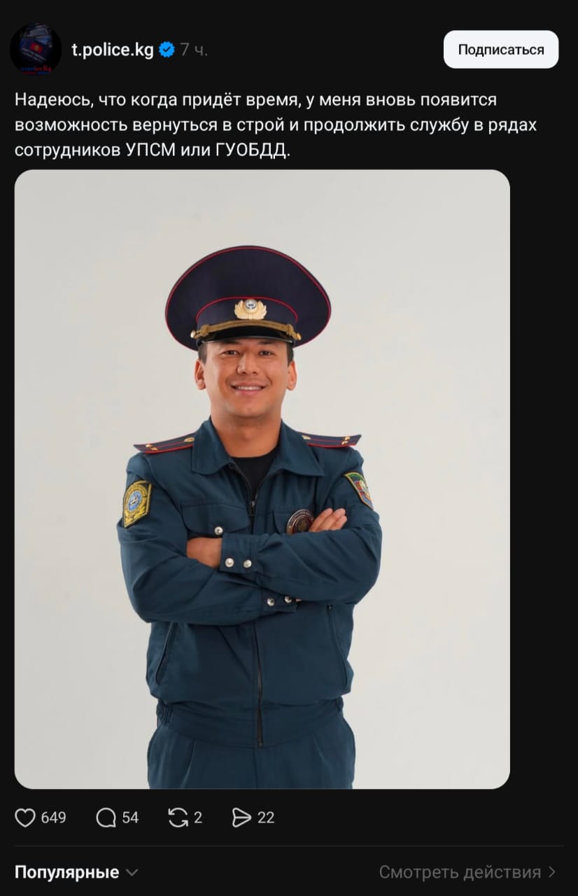 После публикации Таалайбекова пользователи социальных сетей активно обсуждают возможность его возвращения в систему дорожной милиции. Официальных комментариев от МВД по этому поводу пока не поступало.