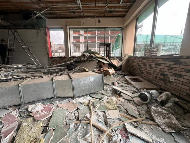 В 6-м микрорайоне Бишкека, на пересечении улиц Юнусалиева и Шопена, проводится демонтаж объекта общественного питания. Об этом сообщает пресс-служба муниципалитета.