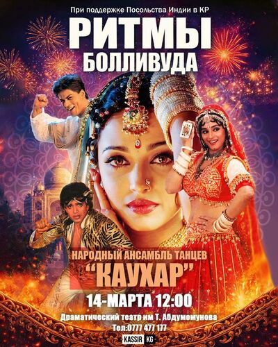 Погрузитесь в атмосферу красочных индийских танцев и энергии знаменитого Болливуда. Вас ждут яркие костюмы и незабываемое шоу в исполнении народного ансамбля «Каухар».