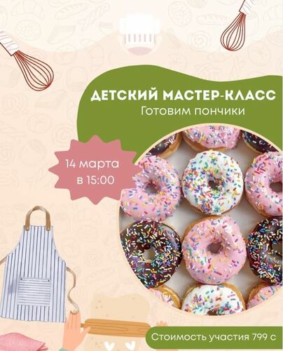 Дети будут творить, учиться и получать удовольствие от процесса. Они сделают пончики. Регистрация по телефону 0558193333.